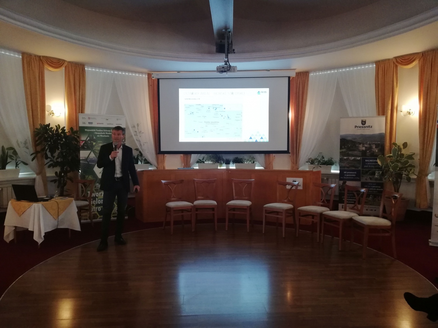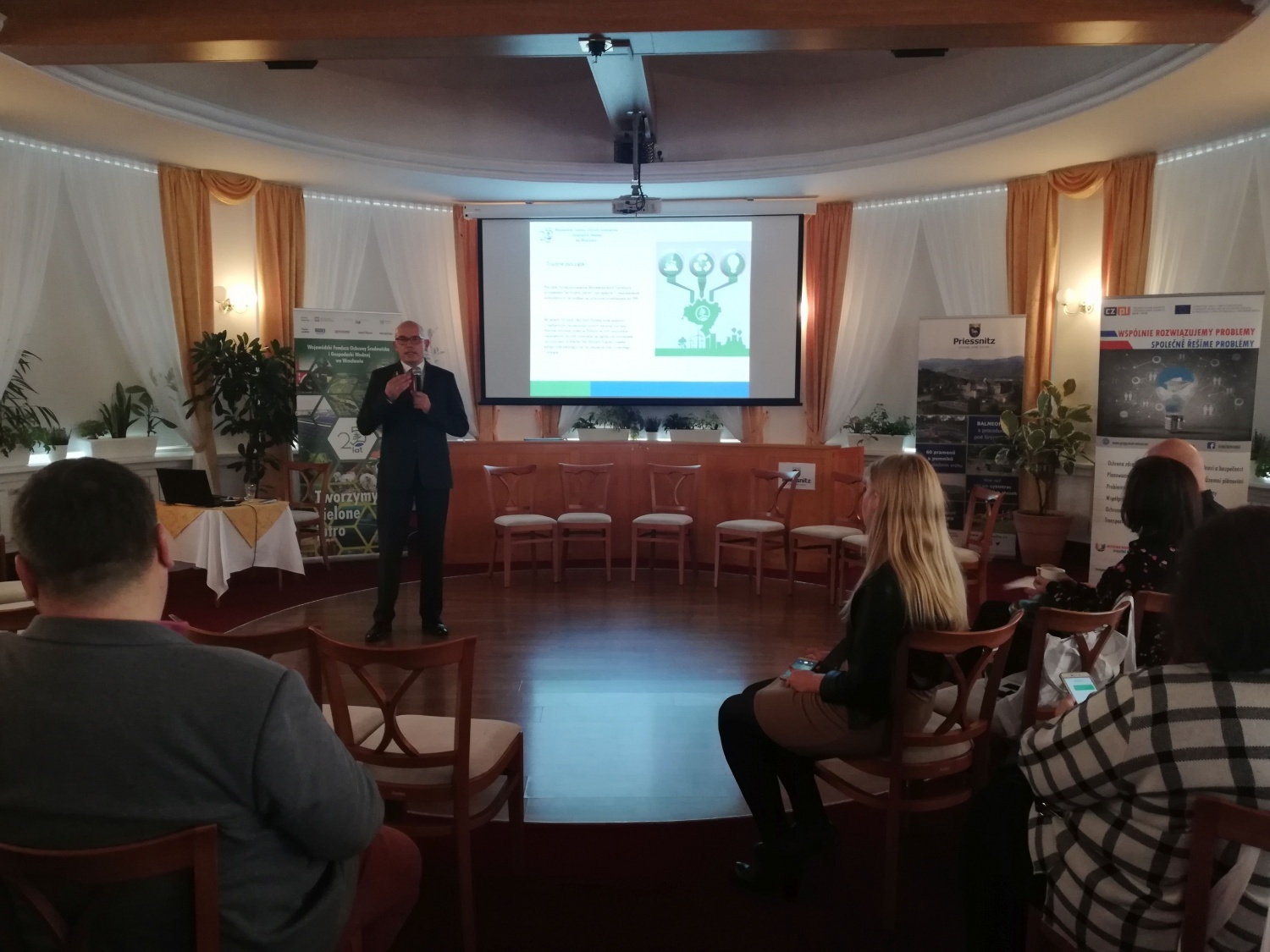 22 llistopada 2019 r. w Uzdrowisku Priessnitz w miejscowości Jesenik odbyła się konferencja pt. „Gospodarka wodna na czesko-polskim pograniczu”. Podczas wydarzenia Prelegenci ze strony polskiej i czeskiej przedstawili m.in. prawne aspekty ochrony wód w Polsce i Republice Czeskiej, połączenia struktur hydrologicznych między Polską, a Czechami. Uczestnicy mogli zapoznać się również z tematyką współpracy narodowej na rzecz adaptacji do zmian klimatu. WFOŚiGW we Wrocławiu przedstawiło bieżącą działalność w zakresie wsparcia samorządów lokalnych i instytucji publicznych w zakresie ochrony wód i gospodarki wodnej. Przedstawiona została działalnością Czesko-Polskiej Komisji ds. Wód Granicznych, a Dyrektor Stowarzyszenia Kurortów Górskich przedstawił referat na temat gospodarki wodnej z perspektywy ośrodków narciarskich.